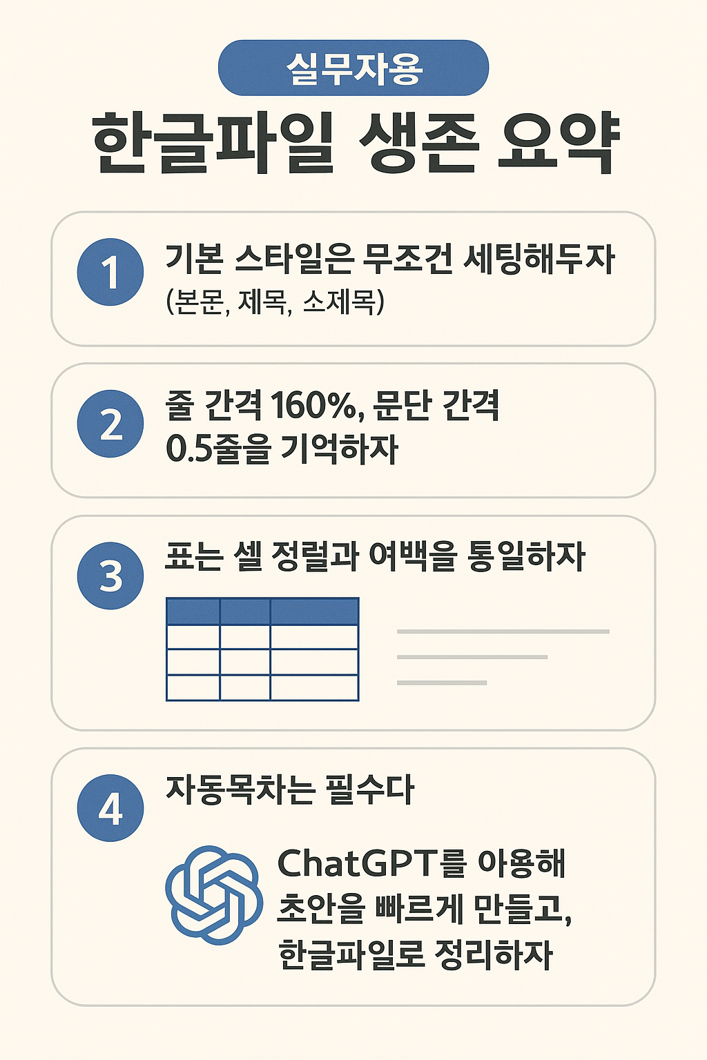 - ChatGPT를 이용해 초안을 빠르게 만들고, 한글파일로 정리하자