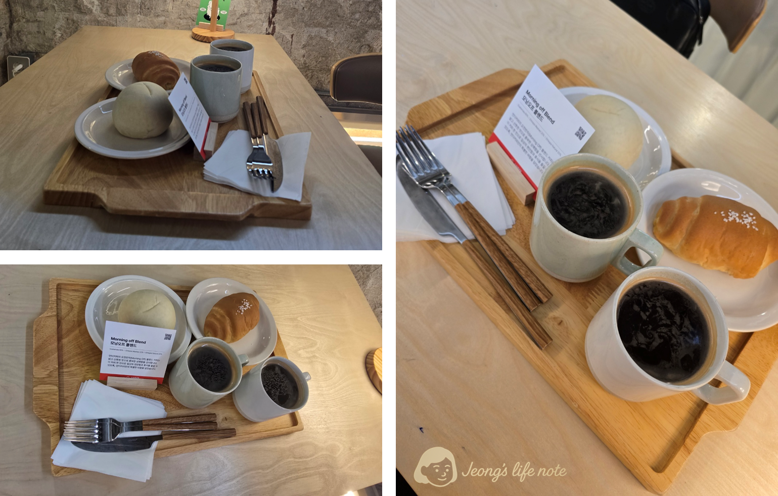 커피는 산미와 고소함의 균형이 좋았고, 빵 역시 부드러우면서도 담백했다.