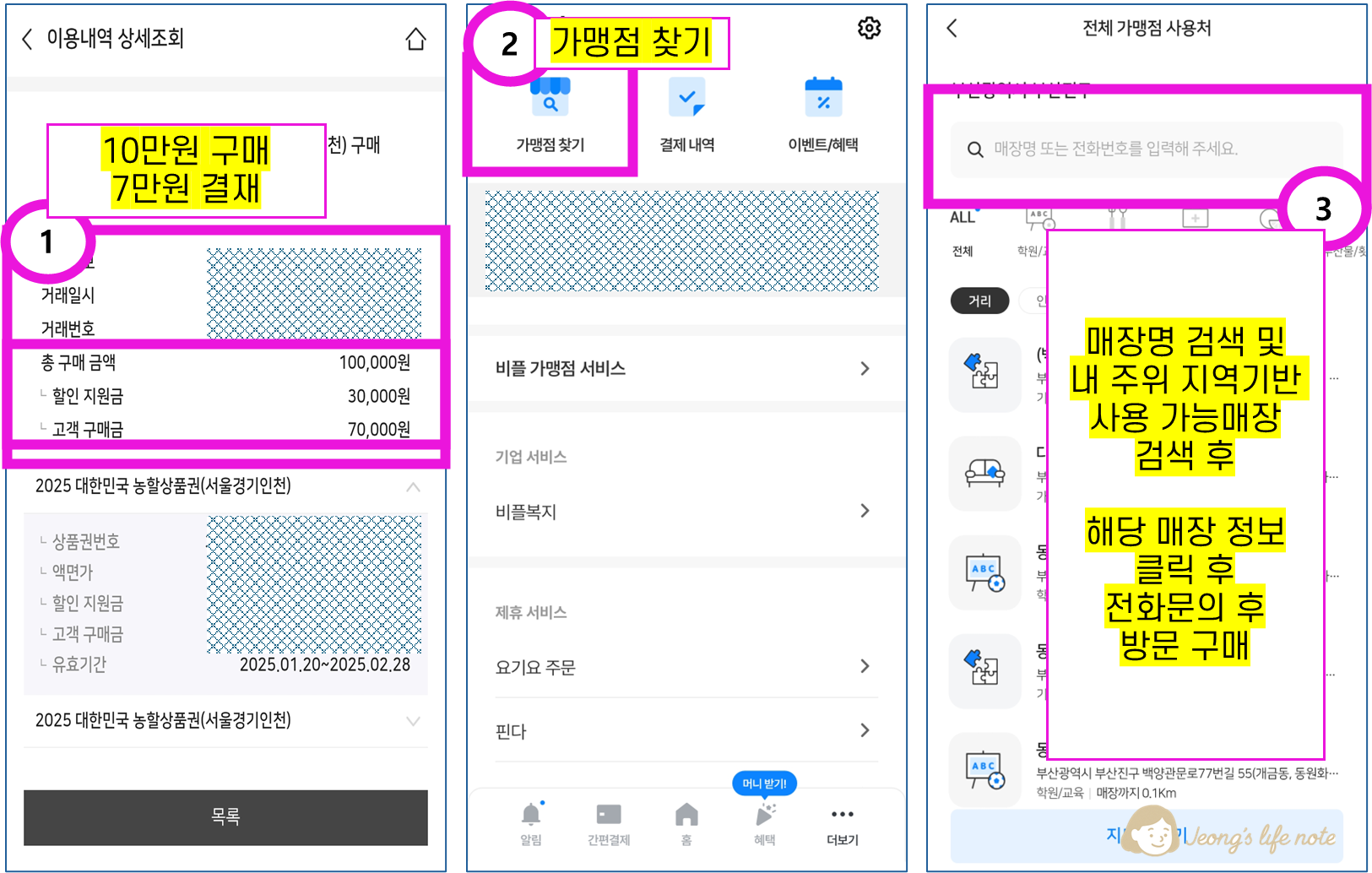 4️⃣ 가족과 함께 한도 활용 – 1인 구매 한도가 10만 원으로 제한되어 있지만, 가족(배우자·부모님 등)이 각각 구매 후 양도해 함께 사용하면 실제 장보기에서 훨씬 큰 금액을 절약할 수 있습니다.